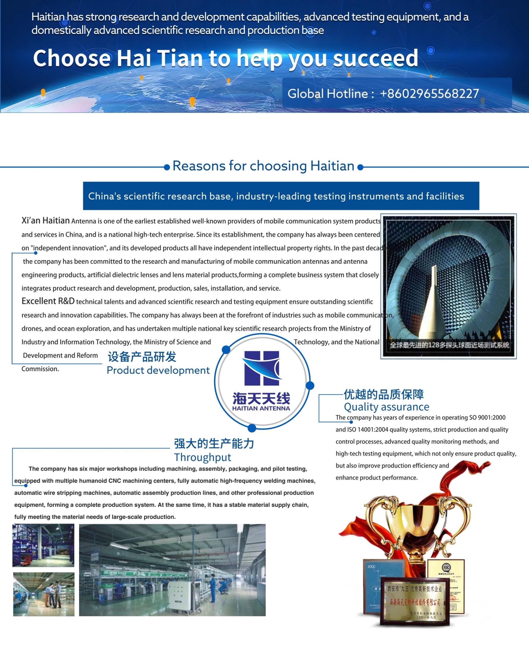 Xi'an Haitian Antenna is one of the well-known providers of mobile communication system products and services established earlier in China, and a high-tech enterprise. Since its establishment, the company has always been centered on "independent innovation", and its developed products have independent intellectual property rights. In the past decade, the company has been committed to the research and manufacturing of mobile communication antennas, antenna engineering products, and artificial med